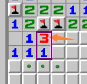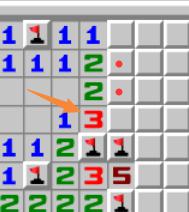 橙色箭头所指的3,周围已有1个雷通过其他方式判出,因此真实数字为2