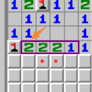 橙色箭头所指的2,周围已有1个雷通过其他方式判出,因此真实数字为1。
